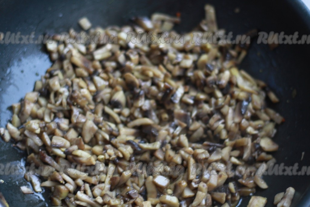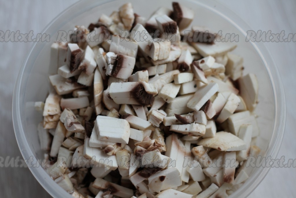 Нарежьте грибы.