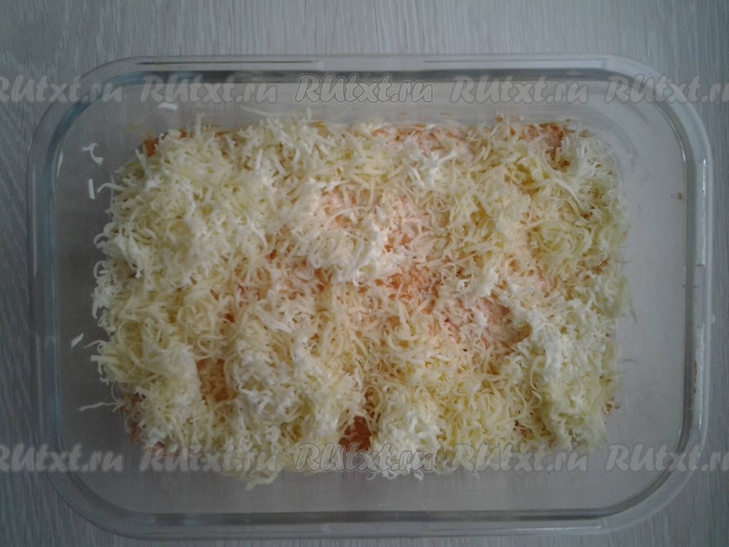 Далее выложите натёртый сыр.