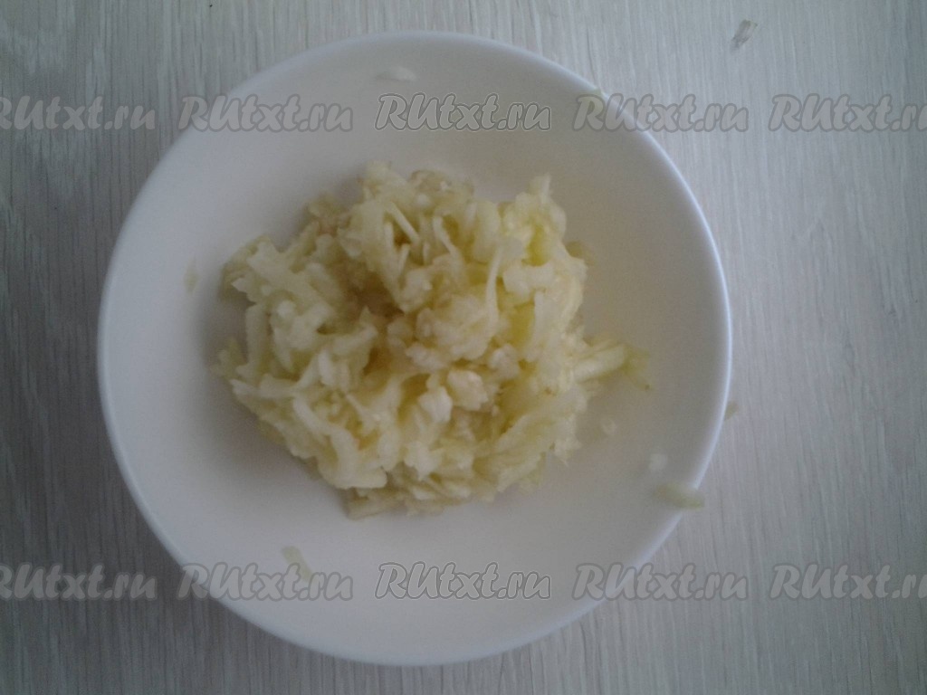 Яблоки, очистив от кожицы и серединки, натрите на крупной терке.