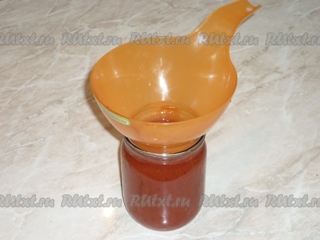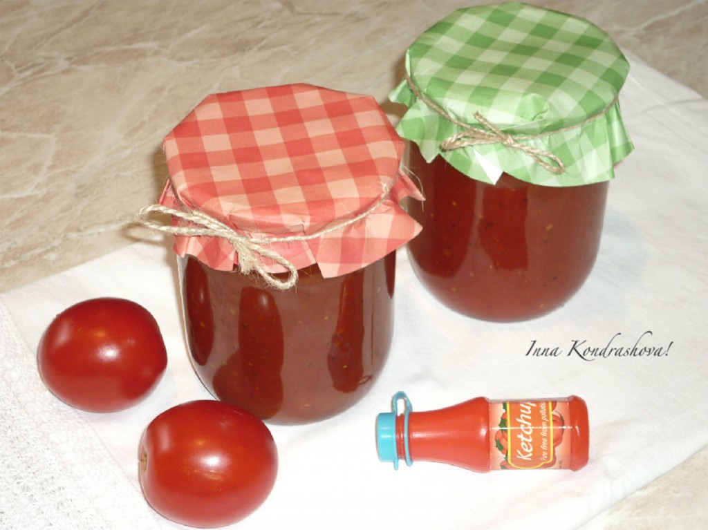 Вкусный, ароматный, густой кетчуп из помидоров с крахмалом на зиму готов.