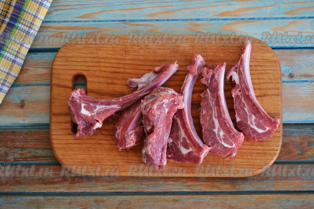 Вымыть бараньи ребра, разрезать их между косточек.