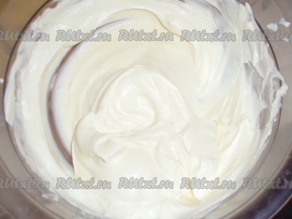 Для приготовления крема сыр маскарпоне взбить со сгущенным молоком. Отдельно взбить сливки. Соединить обе массы и перемешать получившийся крем.