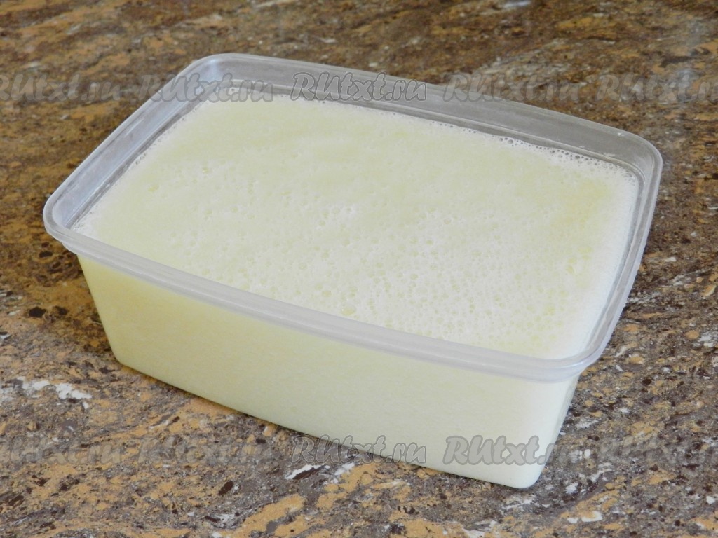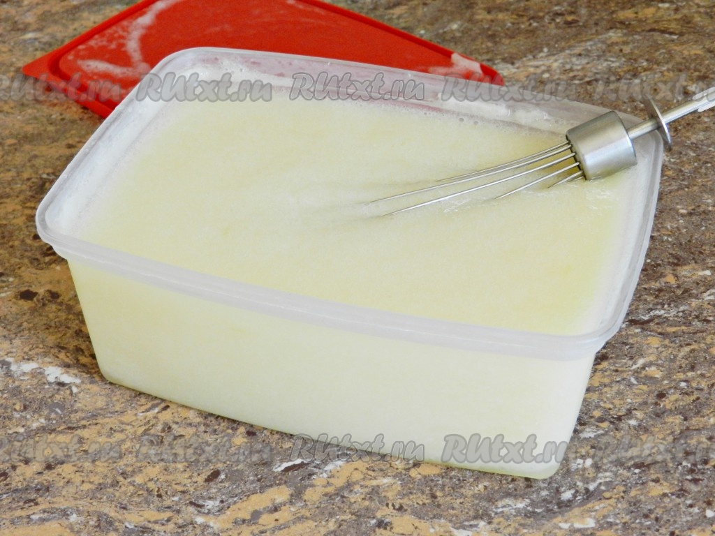 Вылить массу в емкость, пригодную для замораживания. Поставить в морозилку на 4-6 часов до полной заморозки.