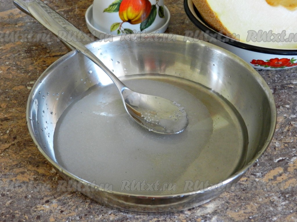 Приготовить сахарный сироп. Для этого в воду всыпать сахар, поставить на огонь, довести до кипения. Снять с огня и остудить.