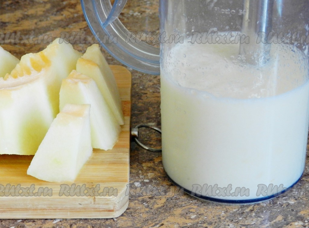 Пюрировать дыню с помощью блендера. Получится около 1 литра дынного пюре.