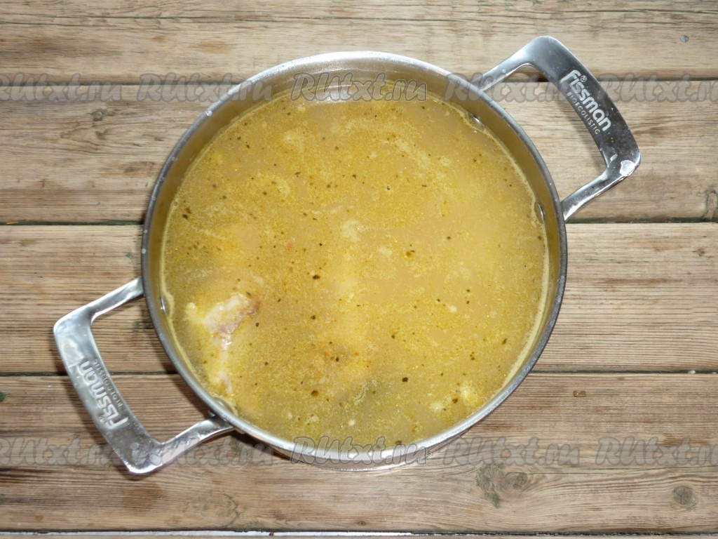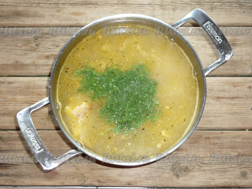 Суп убрать с огня и дать настояться под крышкой 10-15 минут.
