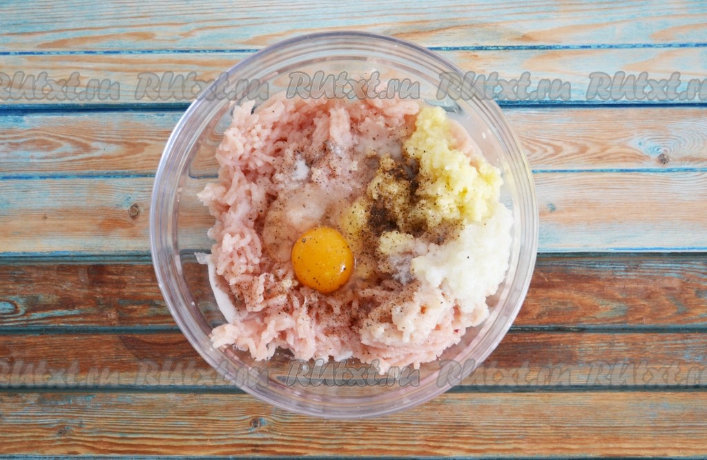 Добавить куриное яйцо, соль и душистый перчик. Тщательно вымесить фарш на протяжении 2-4 минут. Масса должна стать плотной и однородной.
