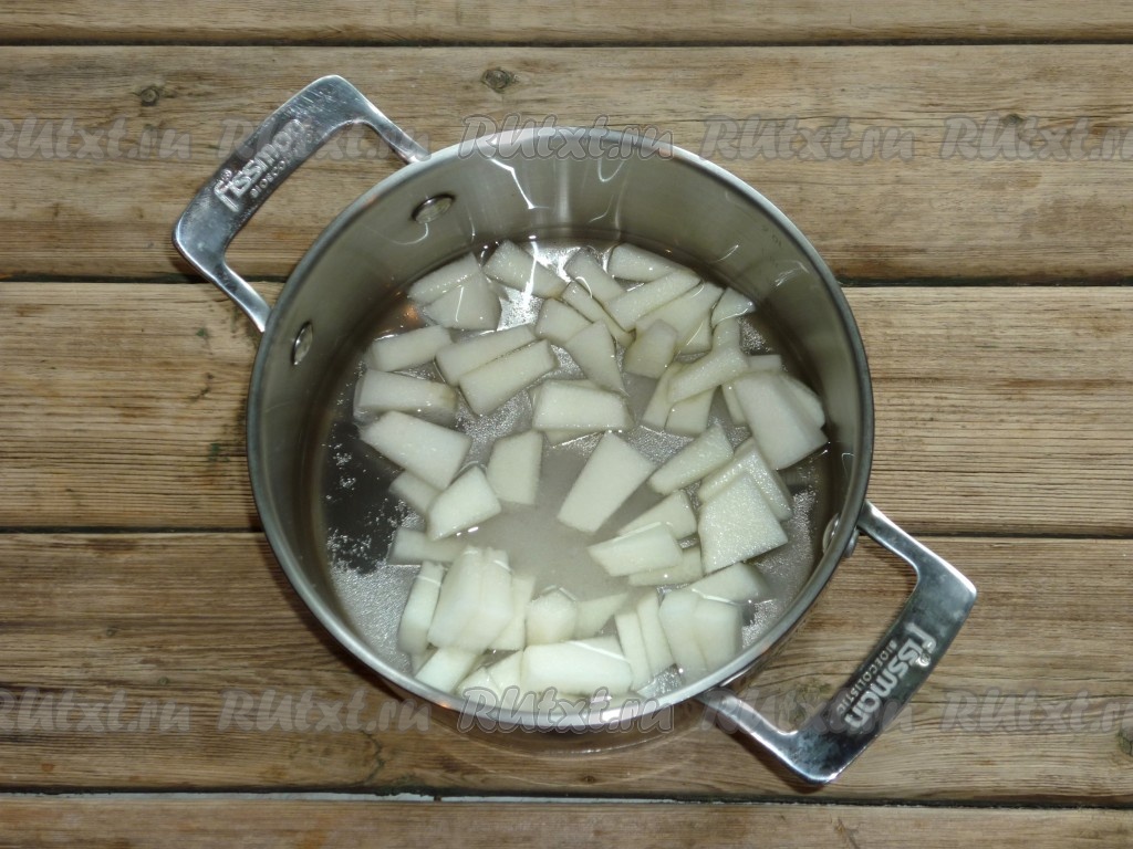Отправить кастрюлю на огонь, довести до кипения, огонь уменьшить и проварить на небольшом огне 5-7 минут.