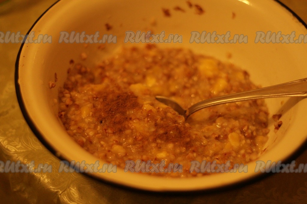 Вне зависимости от того любите Вы гречневую кашу или нет, попробуйте приготовить запеканку из гречки. В этом блюде гречка приобретает совершенно иной вкус. Сочетание с бананом и легкой ноткой корицы делает вкус запеканки неповторимым. Замечательный полезный и вкусный завтрак! Порадуйте себя и близких запеканкой из гречки! А еще это блюдо - прекрасный способ накормить малыша нелюбимой кашей.