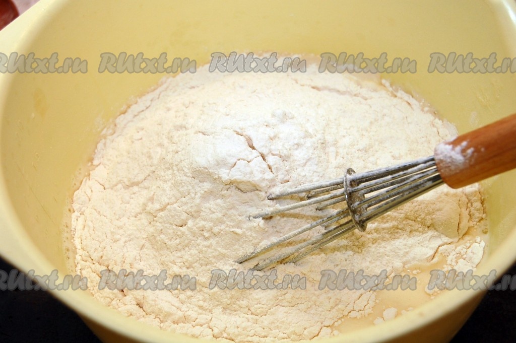 Добавим муку. Муку добавляем постепенно, до консистенции сметаны. Можно добавить несколько ложек растительного масла.