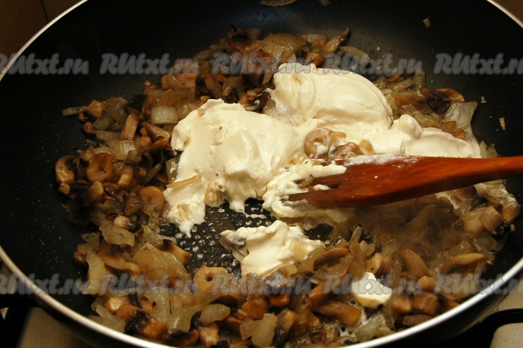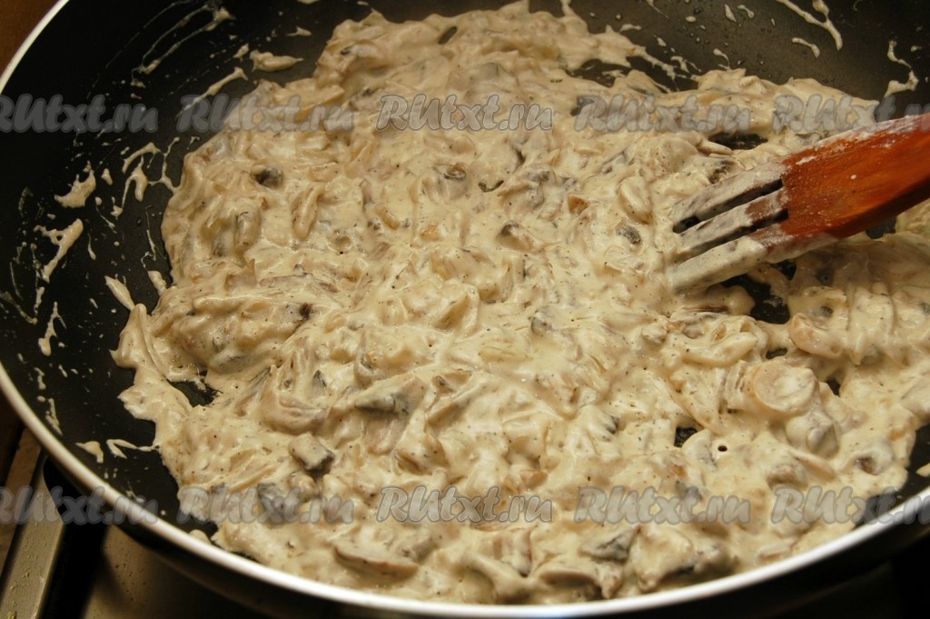Перемешаем и тушим до того состояния, когда начинка станет достаточно густой. Затем даём начинке остыть.