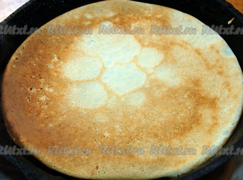 Печем блины на растительном масле на раскаленной сковороде.