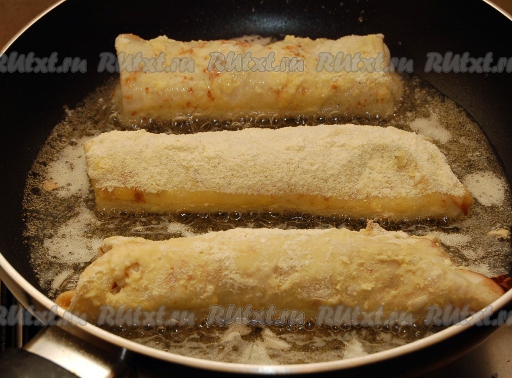 Обжариваем рулетики с двух сторон до румяности.