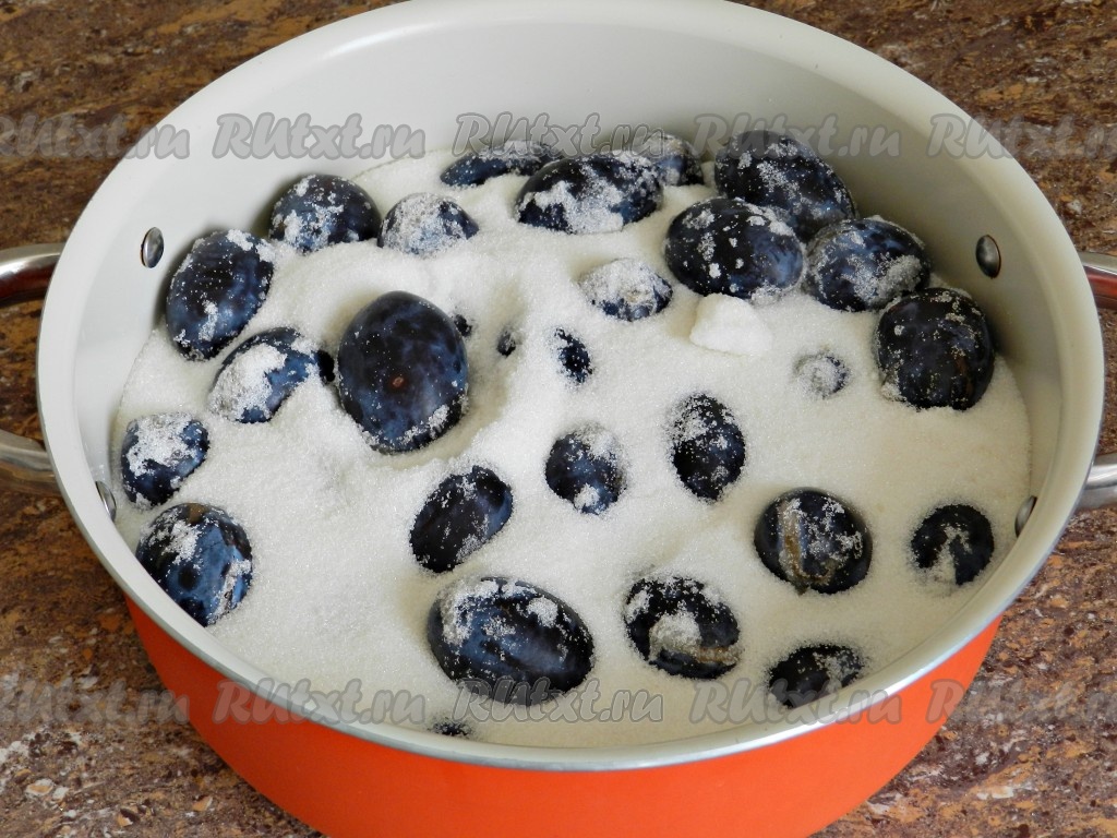 В процессе варки варенье нужно аккуратно перемешивать, чтобы не размять сливы, и не допускать перекипания варенья.