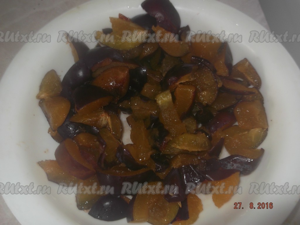 Пока наше тесто подходит, берем сливы, моем, убираем косточки и режем на дольки.
