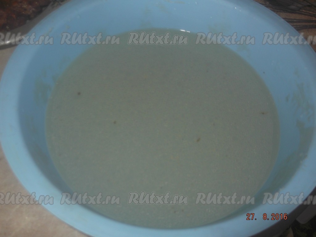 Берем кипяченую горячую воду и добавляем в неё соль, 2 столовые ложки сахара и смалец (жир), перемешиваем и ждем, пока всё растворится.