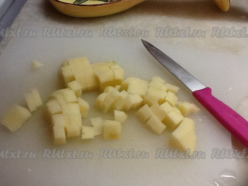 Добавляем в кастрюлю картошечку, нарезанную кубиками.