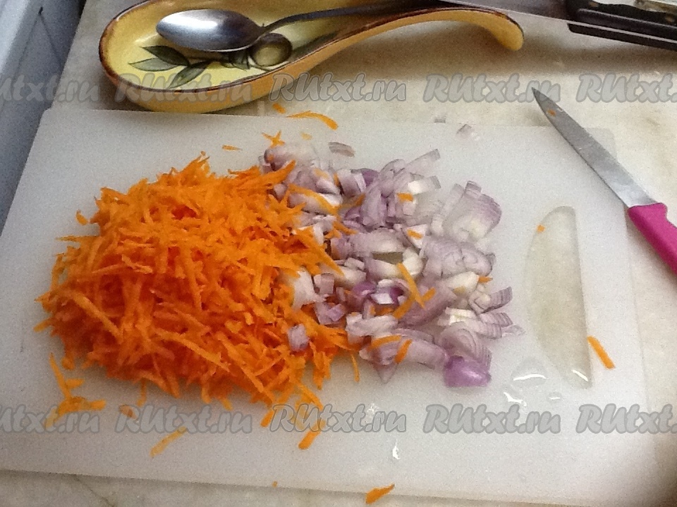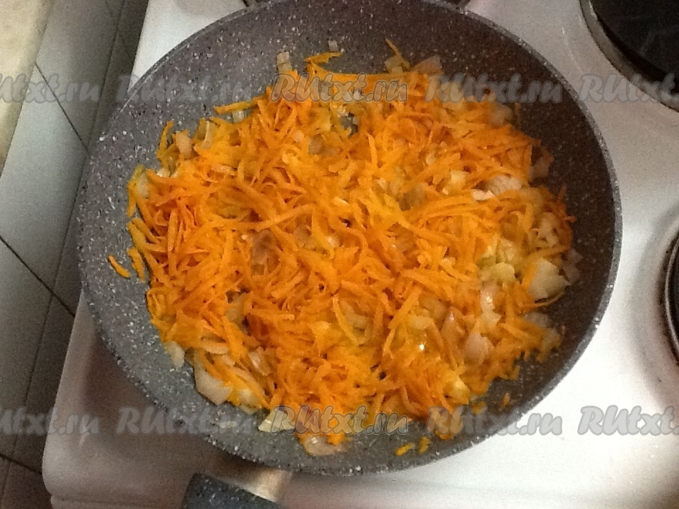 Обжариваем лук с морковкой на подсолнечном масле до мягкости.