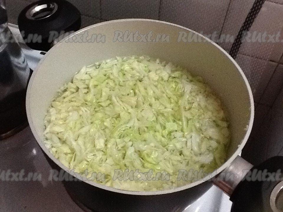 Ставим кастрюлю с водой на плиту, добавляем нашинкованную капусту и немного подсаливаем.