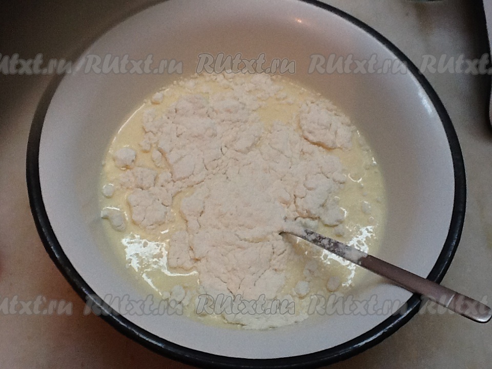 Теперь постепенно добавляем муку и хорошо перемешиваем.