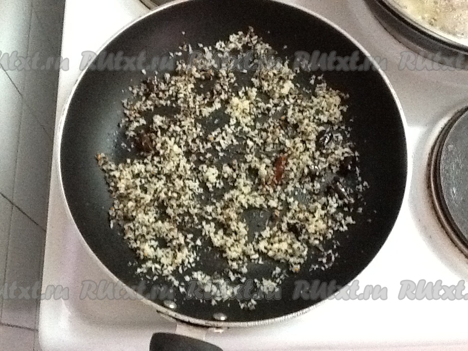 Добавить кокосовую стружку и еще обжарить 1-2 минуты.