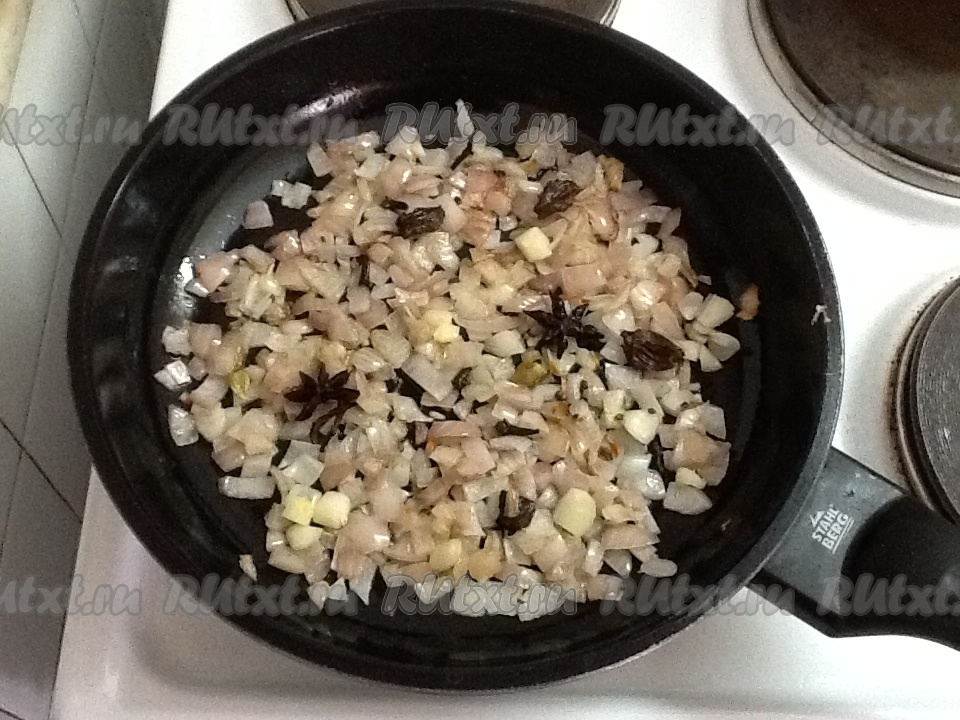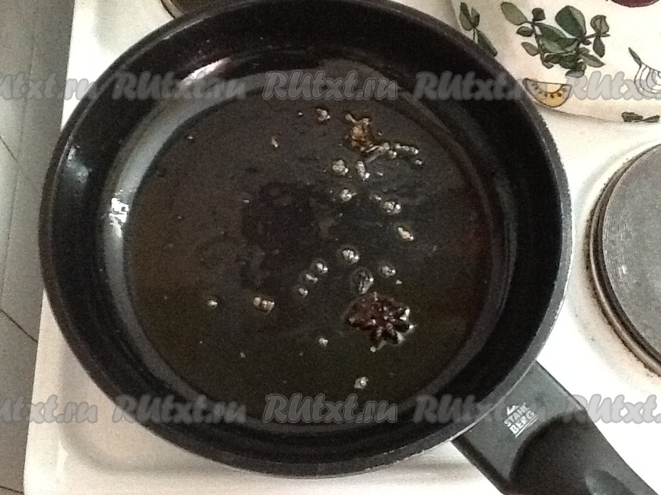 Нагреть 2 столовые ложки масла на сковороде и добавить черный кардамон, зеленый кардамон, звездочки аниса, гвоздички и все это обжарить.