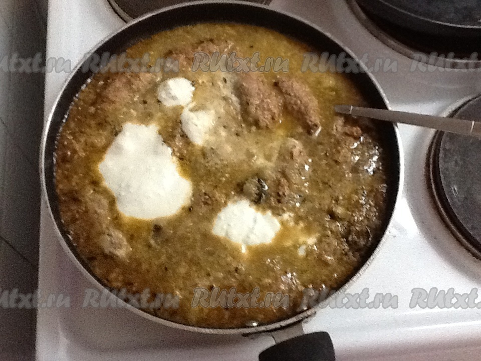 Теперь добавить в сковороду с пастой тушеную баранину, подсолить, если нужно и при желании добавить сливки или сметану - она смягчит остроту! Но если вы любите острое - сметана не понадобится! Потушить на небольшом огне 10 минут.