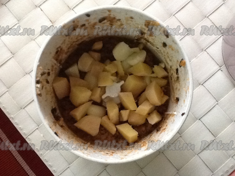 Выложить в сковороду кусочки баранины (у меня был фарш, я его посолила и добавила яйцо), долить полторы чашки воды и перемешать. Тушить под крышкой на среднем огне 20-25 минут.