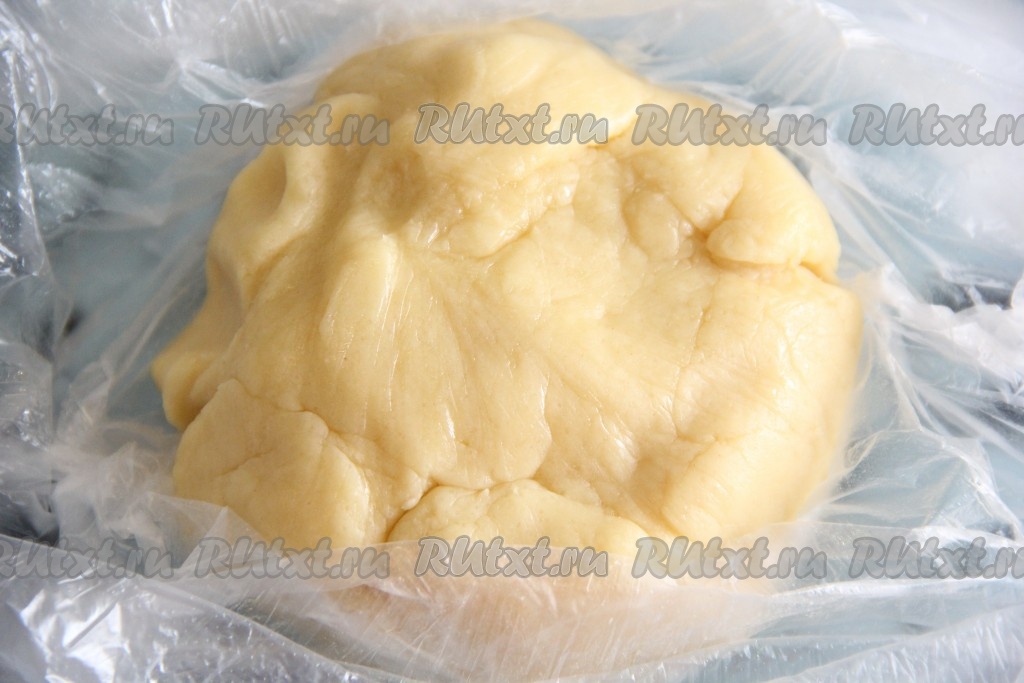 Завернуть песочное тесто в пищевую плёнку и минут на 30 убрать в холодильник.