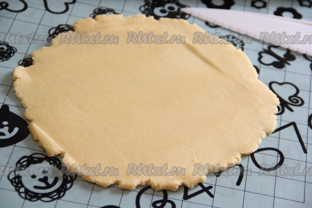 Одну часть теста на припылённой мукой поверхности раскатать не тонко в круг.