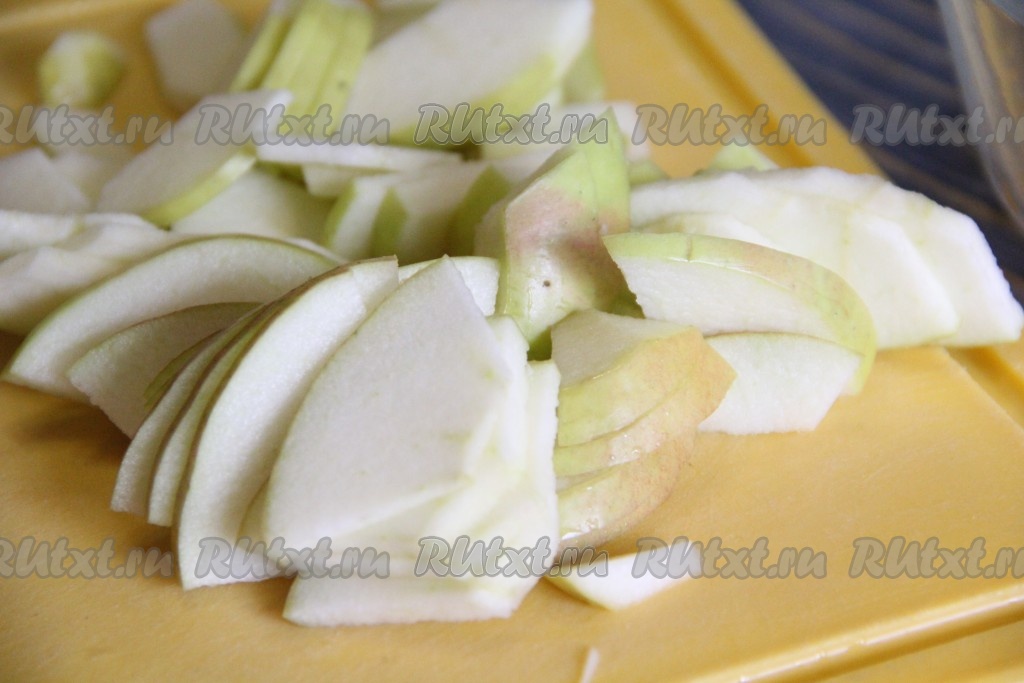 Яблоки вымыть и, удалив семена, нарезать на тонкие ломтики.