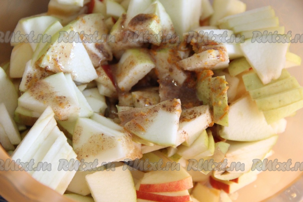 Соединить кусочки яблок и пряную массу, хорошо перемешать получившуюся начинку.