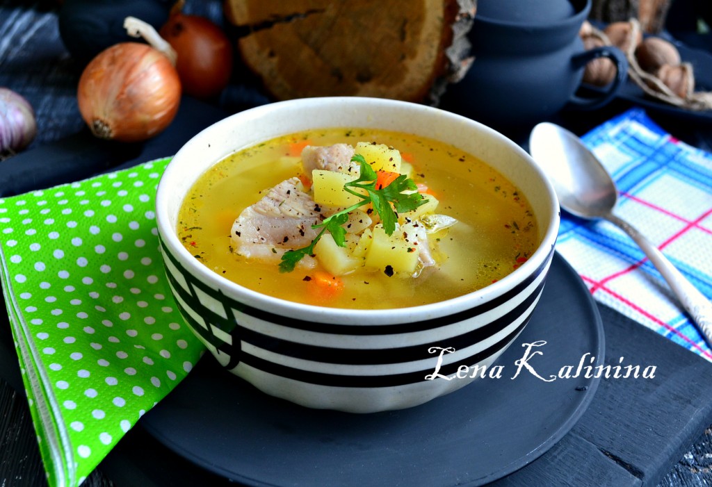 Разлить отличный, очень вкусный и ароматный рисовый суп с мясом и картошкой по тарелкам, посыпать черным свежемолотым перцем. Подать к обеденному столу в горячем виде.