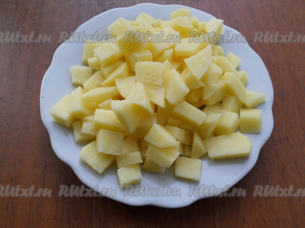 Картофель очистить и нарезать кубиками.