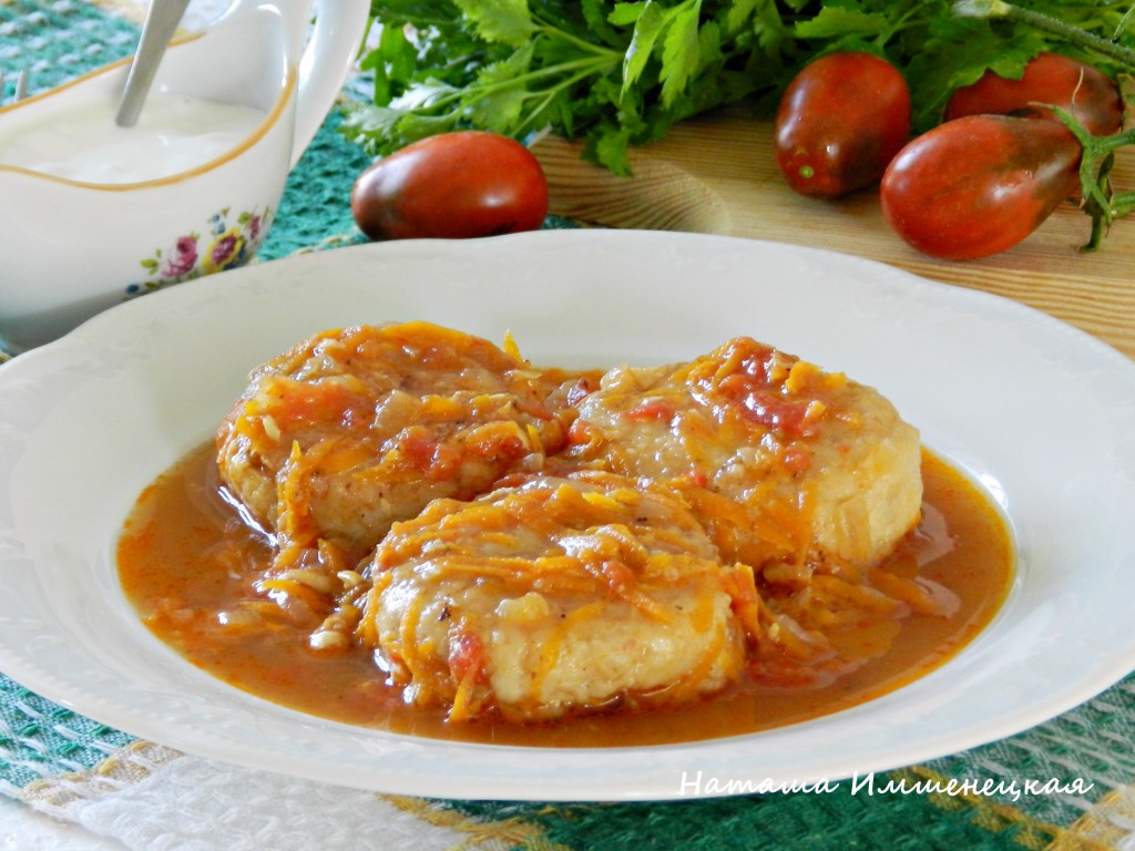 Иногда вместо привычных голубцов, завернутых в капустные листья, я готовлю так называемые "ленивые голубцы". Надо сказать, что в таком виде голубцы получаются не менее вкусными, прекрасно ощущается вкус капусты, соус такой же насыщенный и ароматный, а времени на приготовление уходит значительно меньше. К тому же, некоторые любят разворачивать голубцы и оставлять капусту на тарелке, в этом случае это им не удастся. Сегодня я приготовила нежные куриные ленивые голубцы, вы можете использовать любой мясной фарш.