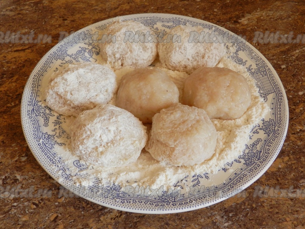 Из фарша сформовать небольшие котлетки, панировать в муке.