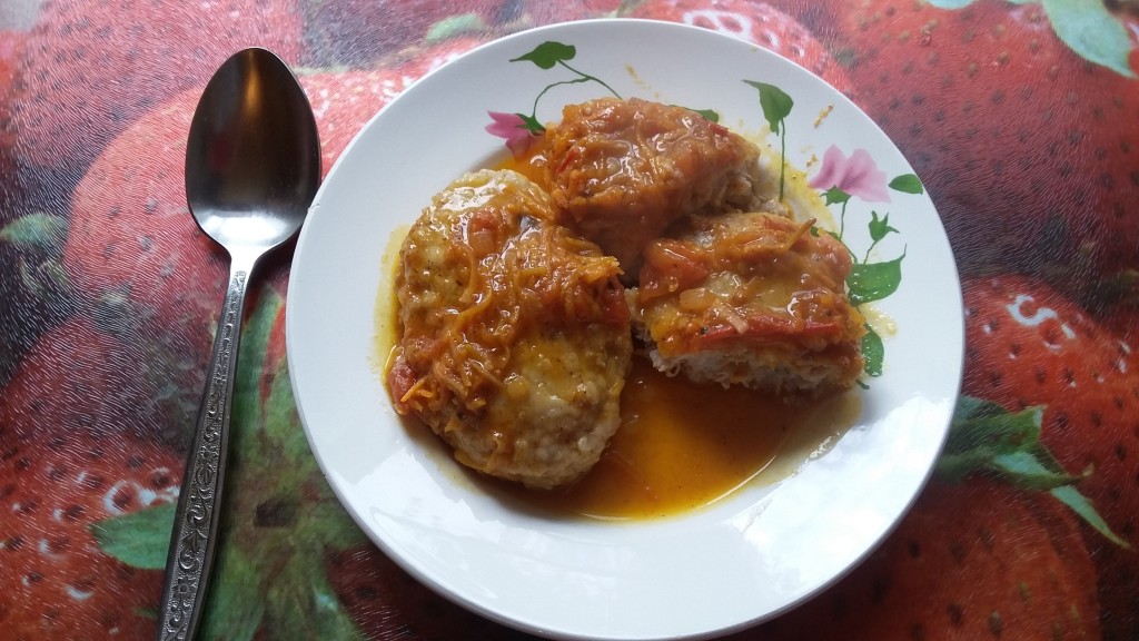 В сковороде разогреть масло и обжарить ленивые голубцы с обеих сторон. Нет необходимости зажаривать их до жесткой корочки, вкус пережаренной капусты может все испортить в этом блюде. Достаточно слегка обжарить, чтобы ленивые куриные голубцы держали форму.