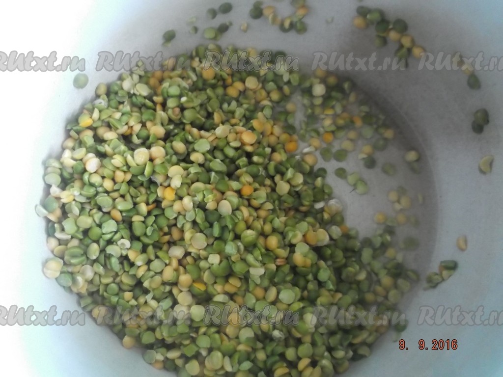 Промываем горох, пока вода не станет чистой, и высыпаем в кастрюлю.