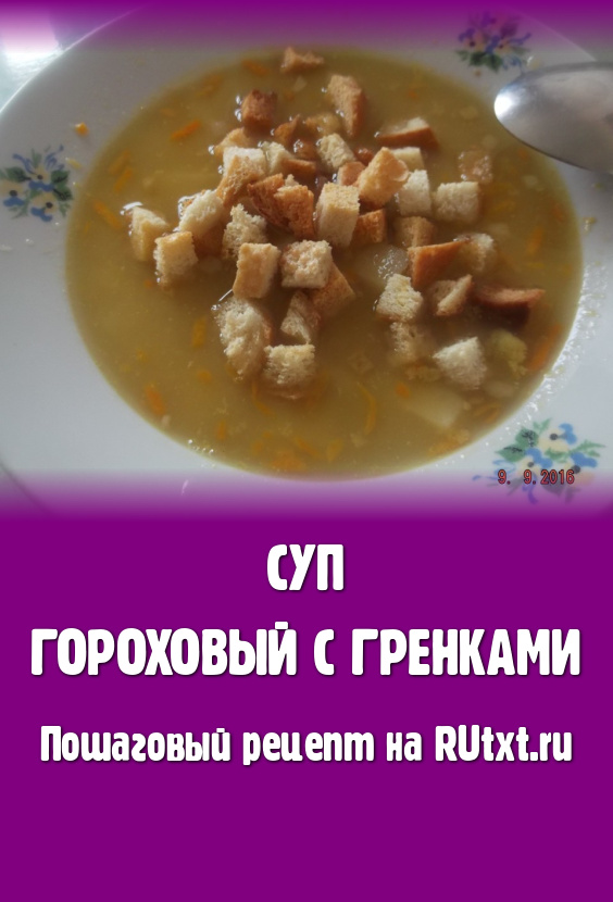 Мои дети очень любят гороховый суп с гренками, они его уплетают за обе щеки и просят добавки постоянно. Им всегда его мало. Во-первых, я развариваю горох до пюре, а во-вторых, гренки придают особый вкус и деткам очень нравится, что они хрустят. Гренки я делаю сама, так как часто остается черствый хлеб и, чтобы не пропадали продукты, я сушу их в духовке. Мы едим гренки, как семечки. Попробуйте, это правда вкусно! В рецепте указан выход продуктов из расчета на 3-х литровую кастрюлю.