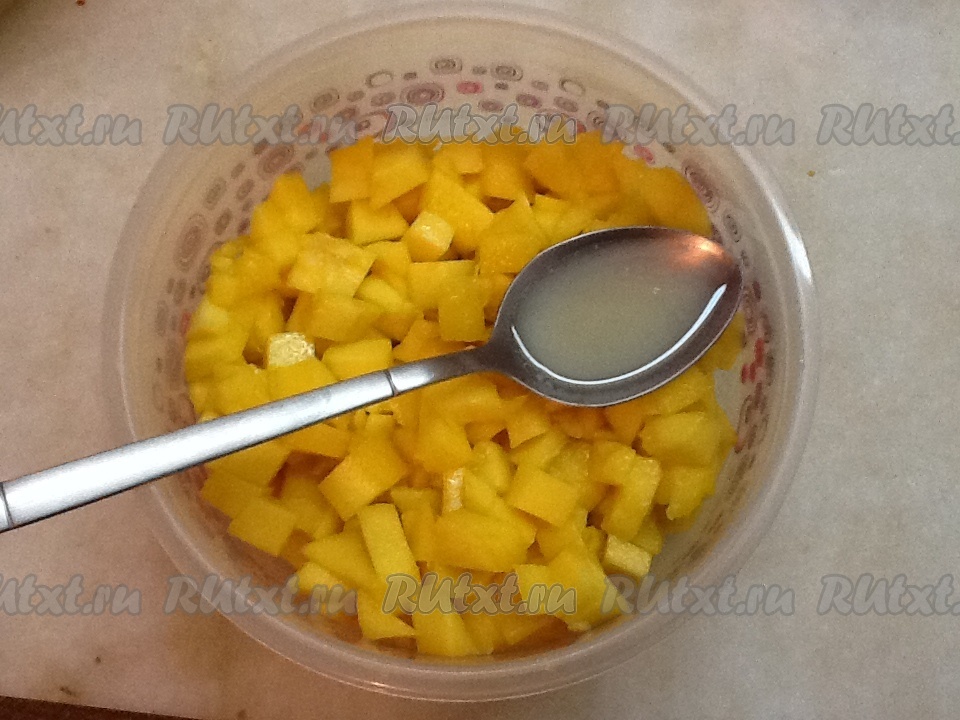 Теперь добавить нарезанный манго, предварительно перемешав его с коричневым сахаром и уксусом. Всыпать соль и сухой имбирь.