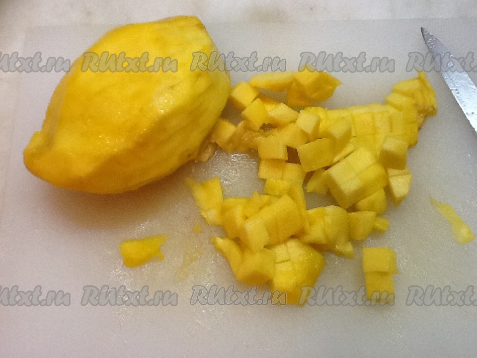 Добавить к нарезанному манго 2 столовые ложки сока лайма и перемешать. Отставить в сторону. Использовать неметаллическую посуду.