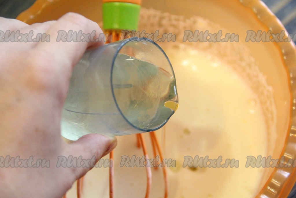 Далее влить растительное масло и перемешать до однородного состояния.
