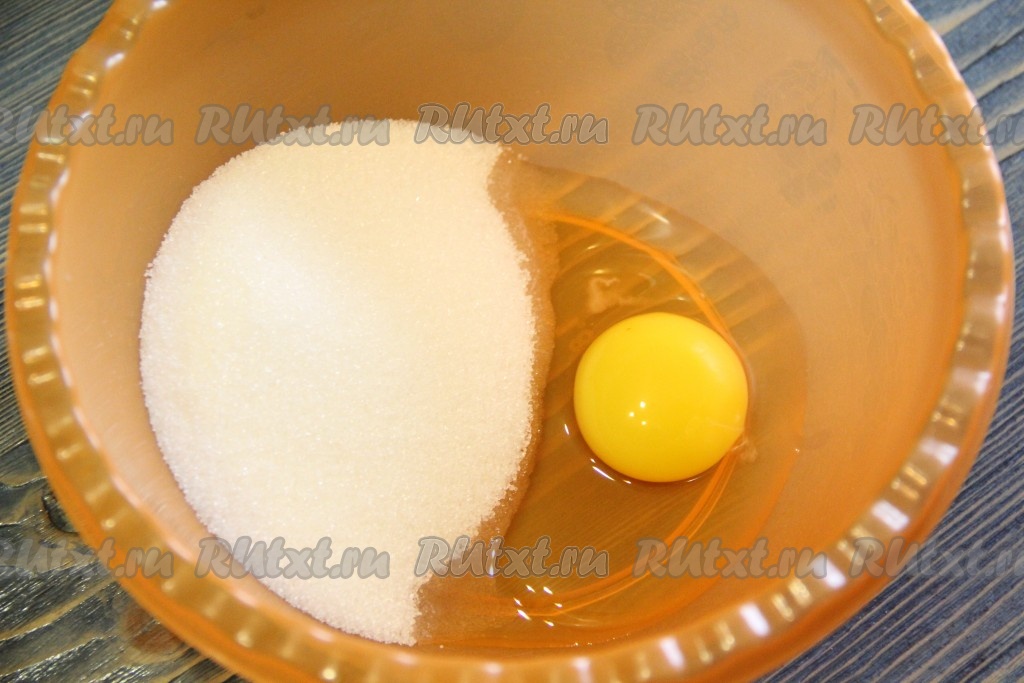 Соединить яйцо и сахар в глубокой миске.