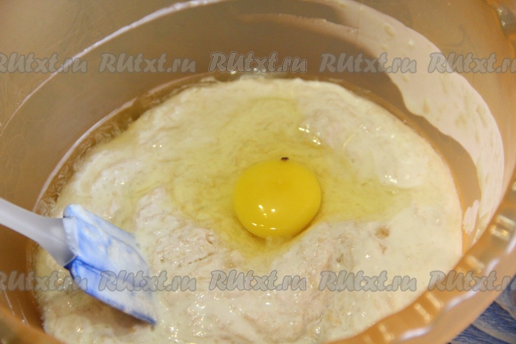 Затем добавить яйцо, растительное масло и перемешать до однородности.