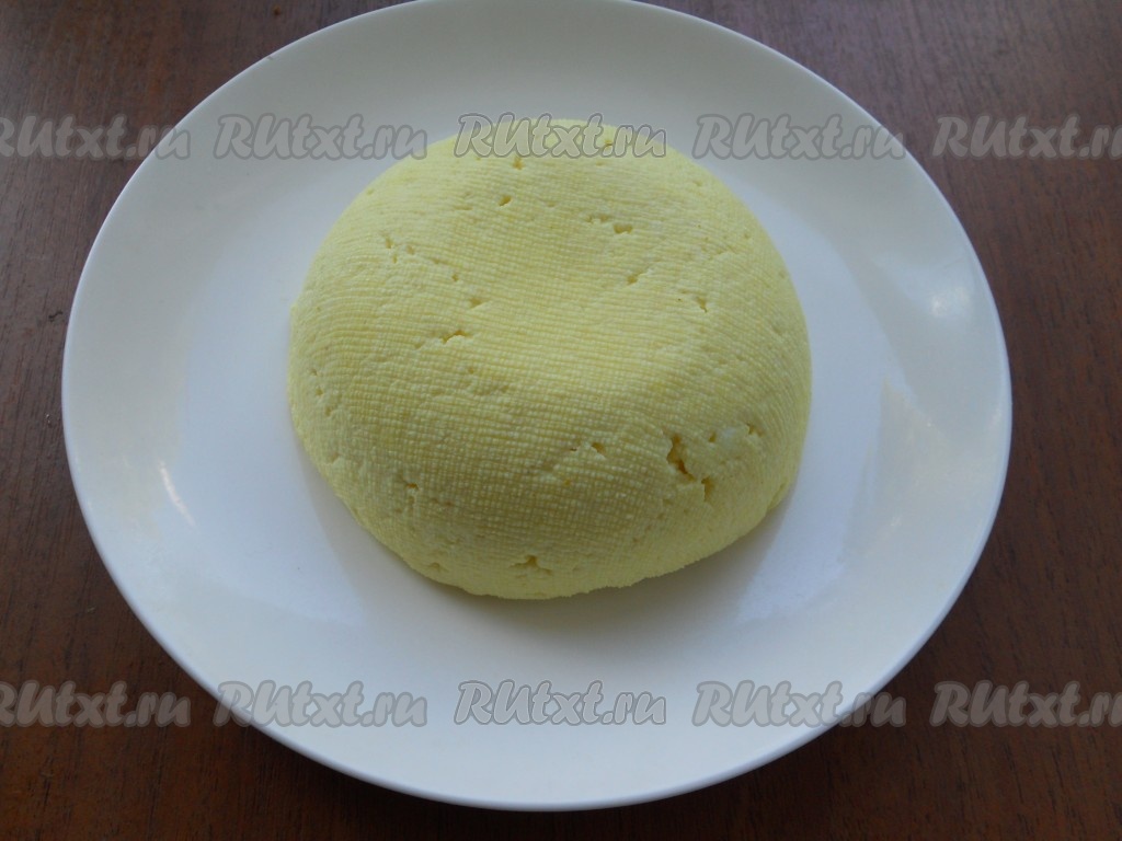 Поместить эту "конструкцию" в холодильник на 7-8 часов. Далее освободить сыр от марли.