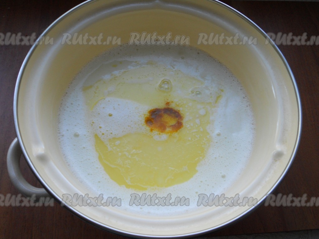 Когда молоко закипит, добавить в него сливочное масло и куркуму. Огонь выставить минимальный.