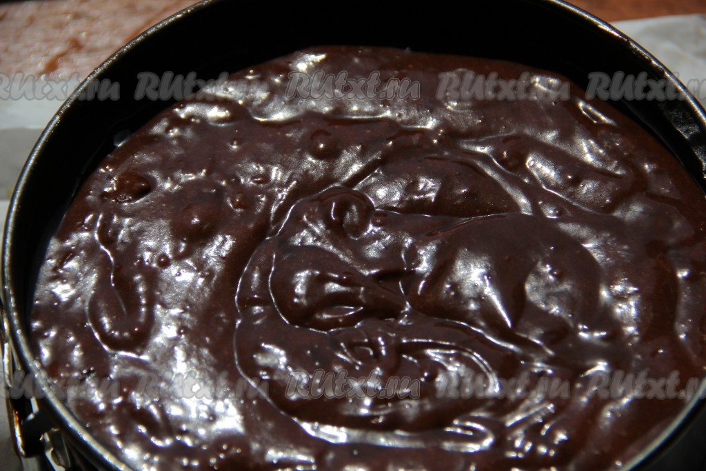 В самом конце, когда наша духовка нагрета до 180 градусов, добавляем в тесто уксус и быстро перемешиваем. Выливаем сразу тесто в смазанную маслом форму (у меня форма диаметром 22 см) и отправляем в духовку. Если форма будет большего или меньшего размера, чем у меня, то торт соответственно будет ниже или выше, тогда время выпекания в духовке нужно увеличить или уменьшить. У меня торт выпекался 40 минут. Не забывайте, что торт может "вырасти" в два или даже в три раза.