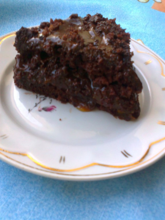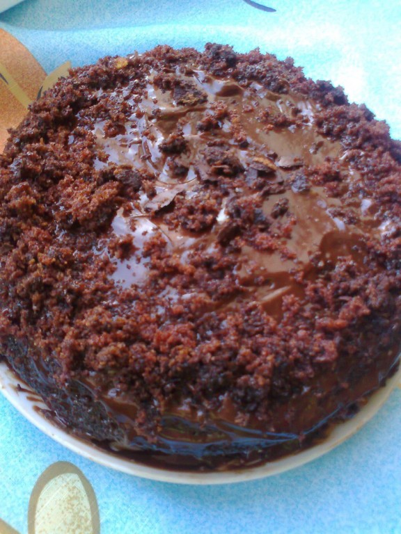В самом конце, когда наша духовка нагрета до 180 градусов, добавляем в тесто уксус и быстро перемешиваем. Выливаем сразу тесто в смазанную маслом форму (у меня форма диаметром 22 см) и отправляем в духовку. Если форма будет большего или меньшего размера, чем у меня, то торт соответственно будет ниже или выше, тогда время выпекания в духовке нужно увеличить или уменьшить. У меня торт выпекался 40 минут. Не забывайте, что торт может "вырасти" в два или даже в три раза.