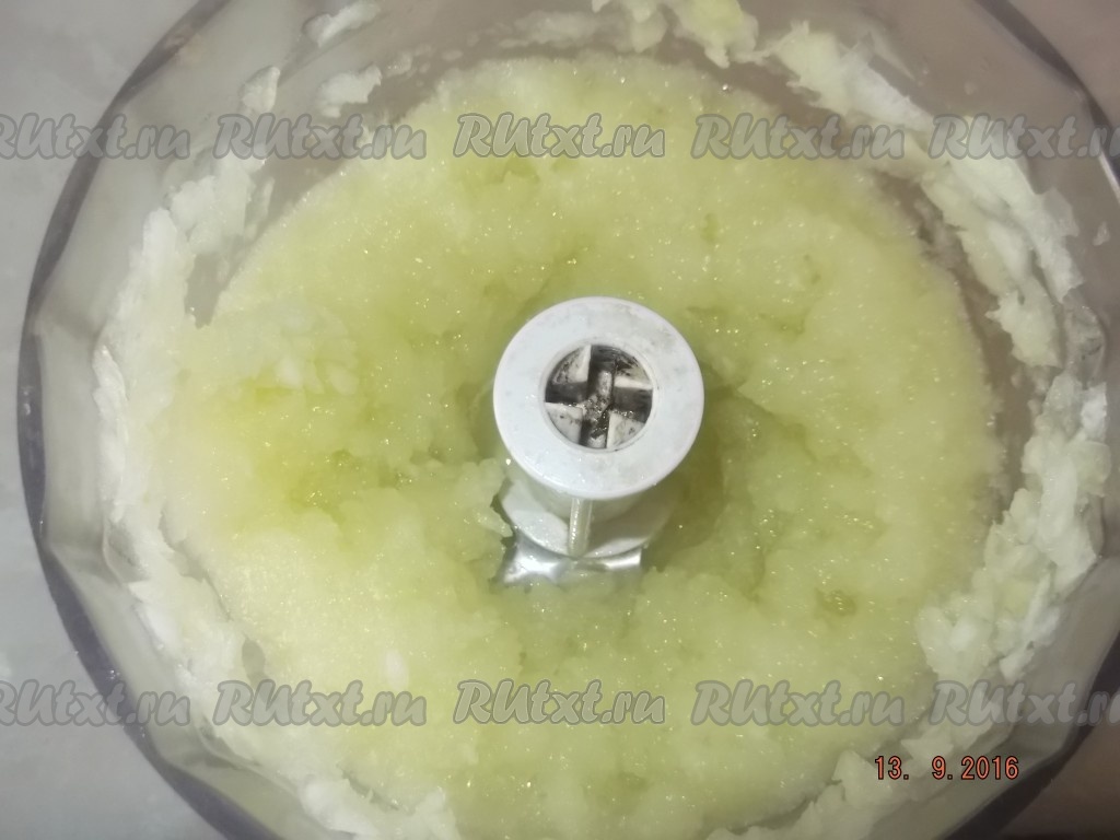 Сначала готовим коржи. Очищаем от кожуры кабачки и измельчаем в блендере до однородной массы.