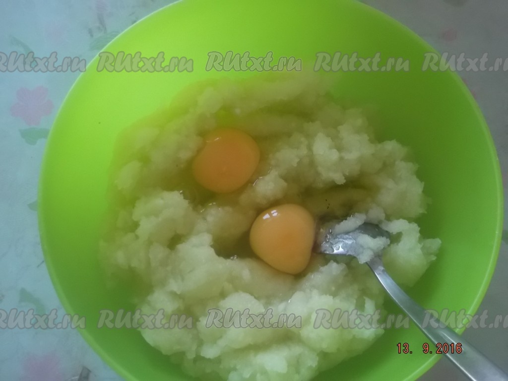 Потом к кабачковой массе добавляем яйца, соль и гашеную соду.